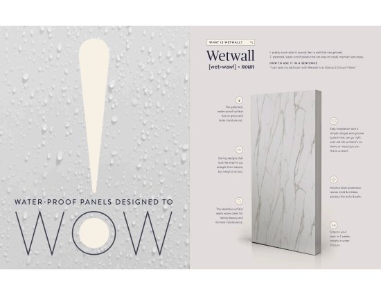 Digital & Print relaunch of WetWall featuring new branding, copy & taglines designed to educate the customer on innovation, quality and convenience, and streamline the path to purchase.